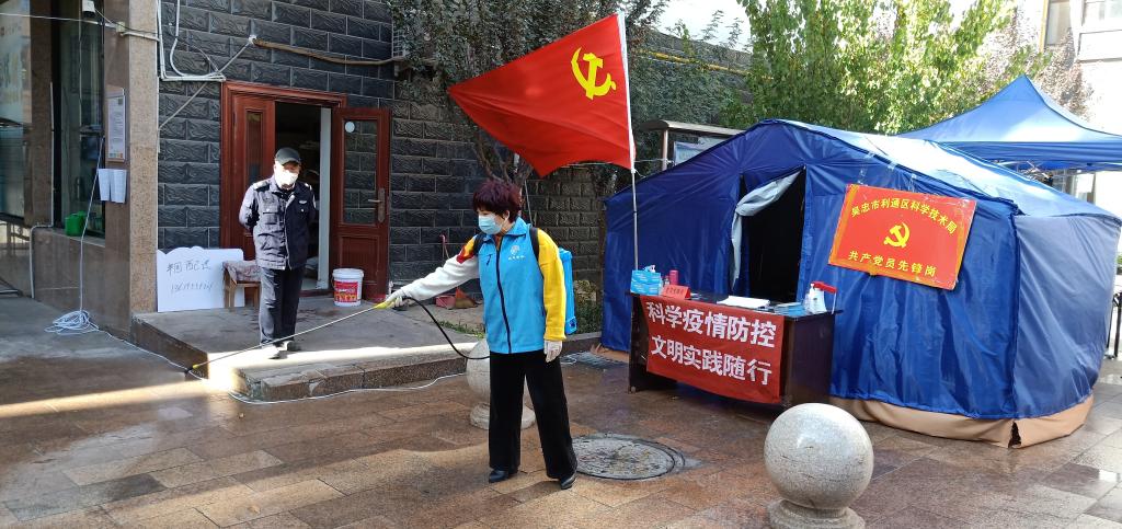 多个小区都在浩海云天小区做核酸,消毒工作很重要,所以每一个小时消一次毒,门房叔叔年龄大了,她一个健步冲过去,拉起消毒带,蹲下来,迅速背在身上,说实话,还真沉,此时科技局领导、同仁们很心疼的说,快放下,让男同志来,她说没问题,娴熟的开始消毒,认真的喷洒每个犄角旮旯。大疫面前,谁说女子不如男?
