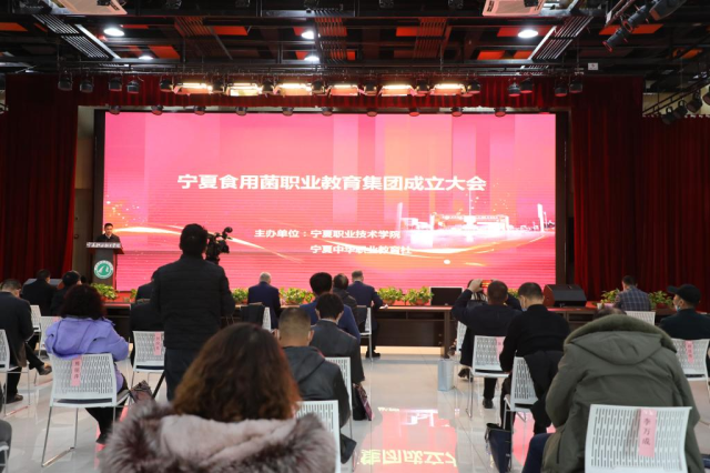 12月28日,宁夏食用菌职业教育集团(以下简称集团)成立大会在宁夏职业技术学院纺织实训中心一楼多功能厅隆重召开。自治区教育厅、自治区农业农村厅、西夏区科学技术局等相关领导到会并为“宁夏食用菌职业教育集团”、“宁夏食用菌科创教育实训基地”揭牌,学校校长、宁夏职业教育社委员刘炜,宁夏食用菌职业教育集团第一届理事会成员单位的代表,学校相关部门主要负责同志出席会议。